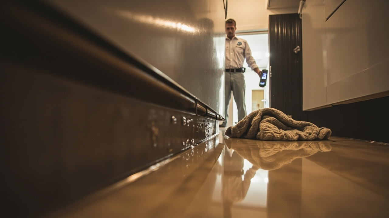 Professional appliance leak cleanup addresses both visible water and hidden moisture. Technicians extract standing water from floors and carpets. They remove wet materials that hold moisture, including baseboards, drywall sections, and damaged flooring. Moisture meters detect water in wall cavities, under cabinets, and within structural materials. Industrial dehumidifiers and air movers dry affected areas to prevent secondary damage. The process includes treating surfaces to prevent microbial growth and documenting moisture levels throughout drying.